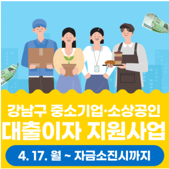 2023년 4월 17일부터 강남구에서 사업자 등록 후 1년 이상이 경과된 강남구 소재 중소기업 및 소상공인에게 대출이자 지원사업을 진행하고 있습니다. 대출이자 지원사업은 연 2 ~ 2.5%를 강남구에서 대출이자를 지원하는 사업입니다. 중소기업 및 소상공인 대출이자 지원사업은 자금소진 시까지 선착순으로 신청을 받고 있다고 합니다. 지원대상 강남구 소재 중소기업 및 소상공인은 지금 바로 신청하기 바랍니다. 중소기업 및 소상공인 대출이자 지원사업에 대한 자세한 내용을 함께 확인해 보겠습니다.