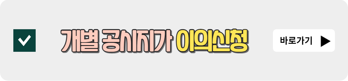 개별공시지가 열람 및 이의신청은 발표 이후 30일(5월 30일) 내에 신청해야 합니다. 개별공시지가는 세금부과 기준으로 활용되며 기초연금과 건강보험료에 영향을 미칠 수 있습니다. 개별공시지가 상승은 곧바로 세부담으로 연결되기 때문에 개별공시지가는 모두에게 매우 민감한 내용입니다. 2023년 4월 28일 개별공시지가 결정고시 이후 개별·공시지가 열람 및 이의신청 절차에 대해 살펴보겠습니다. 개별공시지가 열람 및 이의신청은 아래 바로가기에서 지금 확인 가능합니다.
