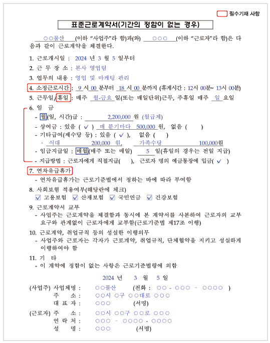 | 중요 근로조건 (서면 명시·교부) |