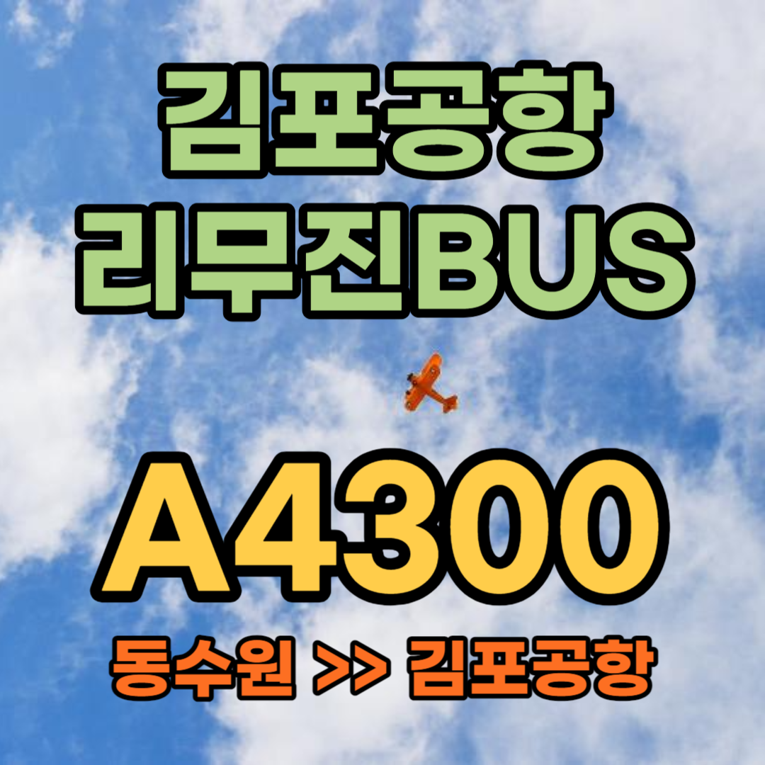 동수원에서 김포공항으로 운행하는 A4300번 리무진 버스는 "동수원 공항버스 정류장" 에서 탑승할 수 있습니다. 공항버스 정류장 번호는 제03185호입니다.