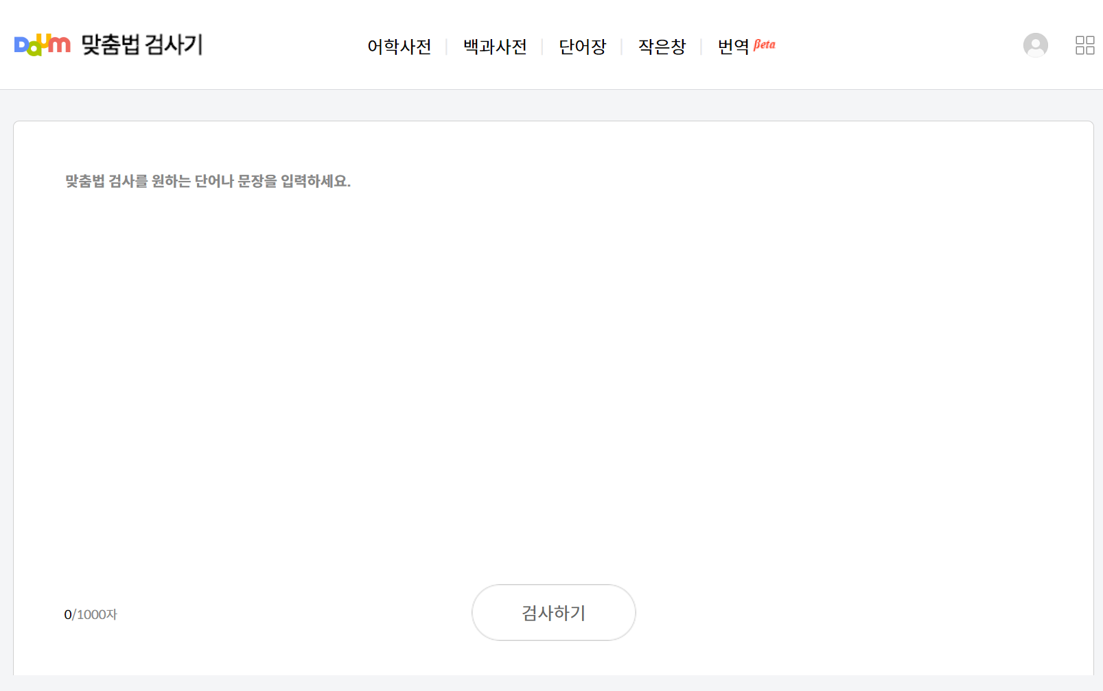 국내의 대표적인 포털사이트 다음(Daum)에서 제공하는 맞춤법 검사기입니다. 최대 1,000자까지 검사를 지원합니다.