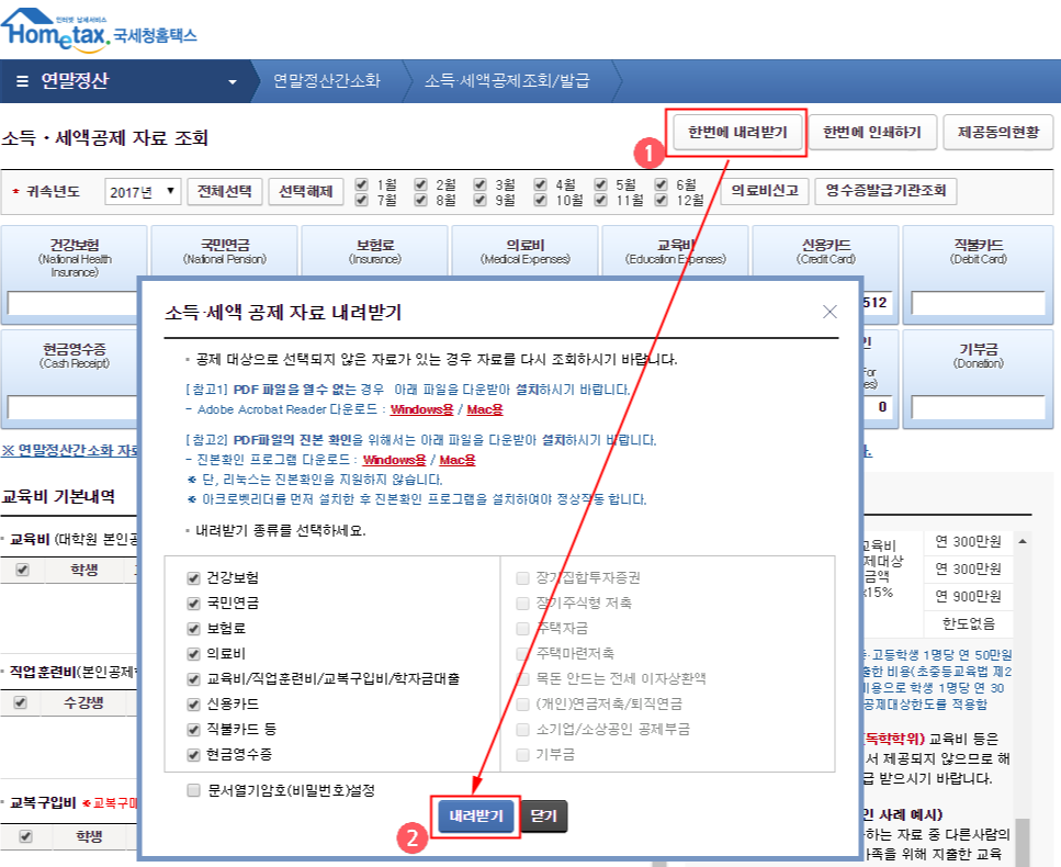 연말정산간소화 자료 홈택스 내려받기