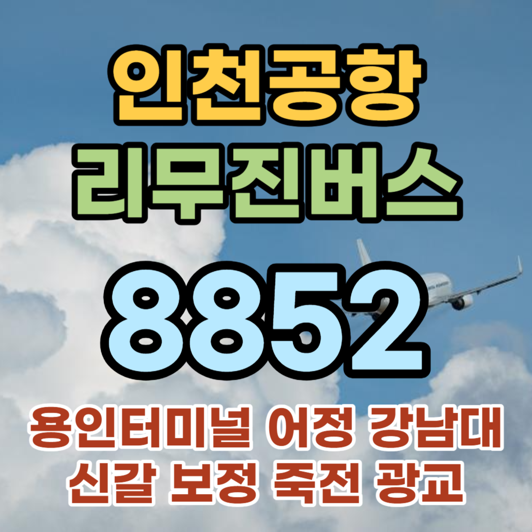 용인공용터미널에서 출발하여 동백월드메르디앙, 어정역, 강남대역, 세종그랑시아, 신갈역, 연원마을LG, 보정역, 죽전역, 풍덕고교사거리, 현대홈타운, 광교마을, 수원광교박물관을 경유하여 인천공항 제1여객터미널, 제2여객터미널을 운행하는 공항버스 8852번의 시간표, 노선도, 이용요금, 배차시간, 유실물 관련 연락처를 알아보았습니다. 용인터미널 강남대역 신갈역 보정역, 죽전역, 광교 인근지역에서 인천공항 리무진 버스 8852번을 이용하시는 분들은 미리 검토하시면 도움이 되겠습니다.