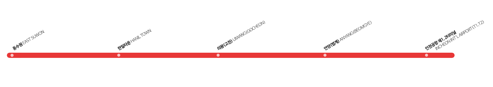 동수원 >> 한일타운 >> 의왕(고천) >> 안양(범계) >> 인천공항 제1여객터미널 >> 인천공항 제2여객터미널