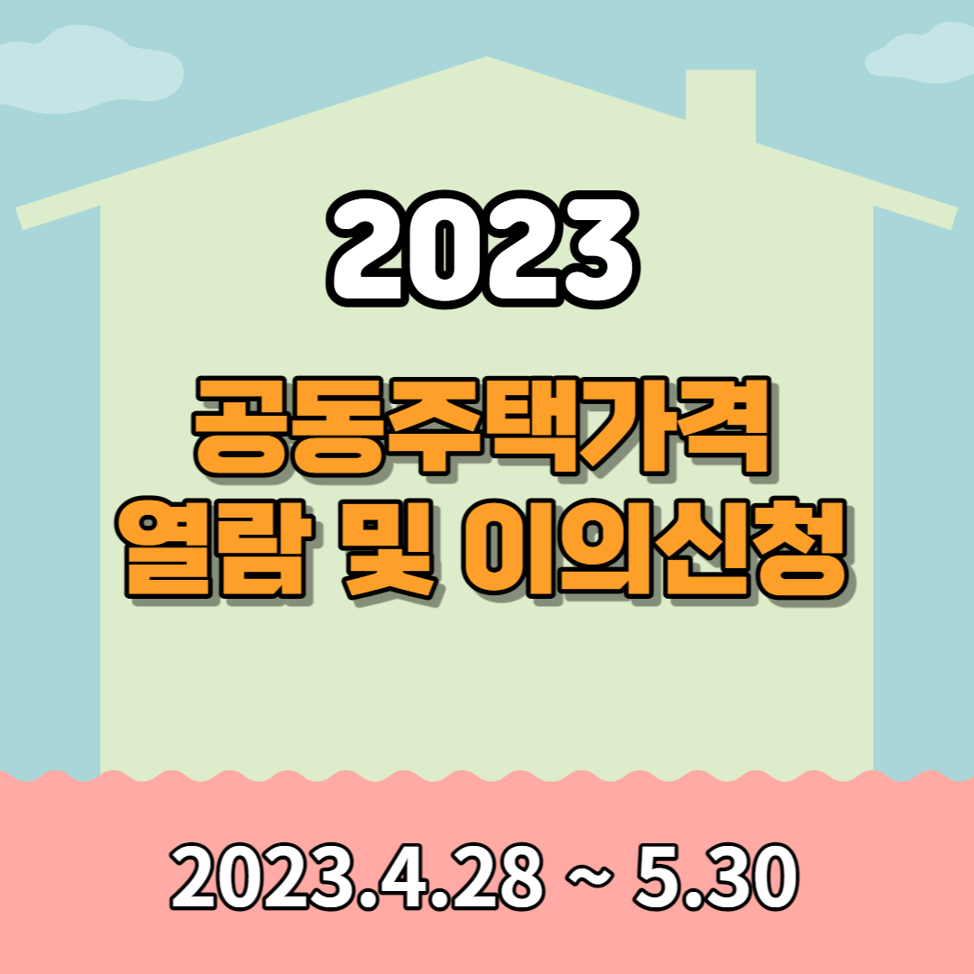 공동주택가격 열람 및 이의신청은 2022년 12월 31일까지 사용승인을 받은 공동주택에 대하여 2023년 1월 1일을 기준으로 조사 산정한 공동주택가격입니다. 2023년 4월 28일부터 5월 30일까지 33일 동안 열람과 이의신청을 할 수 있습니다.
